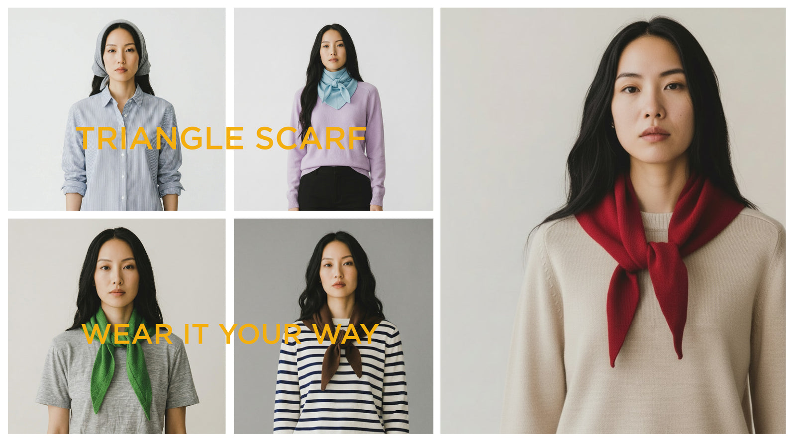 We love the triangle scarf because it can be worn so many ways, and the pops of colour compliment almost all outfits.